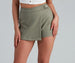 The perfect faux suede skort to slip on and look cute running late in! It features a high-rise waist with a side snap closure. faux-wrap front. shorts back with zipper closure. Complete the look in knee-high boots and a cardigan.Â
