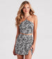 Look stylish in this zebra print mini skirt running wild keeping up with your social calendar! It features a sleeveless halter neckline. spaghetti straps. an open lace-up back. and a fitted crop hem on brushed knit stretchy fabric. Complete the look with matching bottoms.