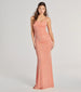 Let glitter polka dots accentuate your natural shine on the Rylie formal long dress to make one glamorous impression! Side and back ruched seams accentuate your curves while the column silhouette highlights your sultriness down to the floor-length hem.