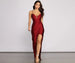 Strike a pose in our sizzling Sahara wrap dress! She features a deep V neckline with bar accent detailing. a wrap front and a thigh-high slit. Pair this gorgeous formal dress with some strappy heels and dazzling rhinestone duster earrings.