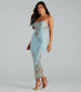 Perfect for a trip to Saint Tropez or embracing a Parisian vibe. this chic floral mesh maxi dress is exactly what you need! The long dress features a sleeveless square neck. bungee spaghetti straps. side ruched seams to accentuate your curves. a flattering bodycon silhouette. and a maxi-length hem. The maxi dress is designed with a dreamy floral print on airy mesh fabric with a stretchy knit lining. Complete the look with a dainty bracelet and sandals.