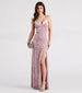 Beautifully crafted from crushed velvet for a brilliant luxe look. the Samaria formal dress will have you looking flawless at school dances. weddings. and banquets! She features a sleeveless V-neckline. a padded bust. sleek bungee spaghetti straps that form the strappy back design. a mermaid silhouette. and a sultry front slit along her floor-length hem. The formal long dress is composed of a soft crushed velvet fabric with lining and moderate stretch. Finish the look with a rhinestone bracelet and stiletto heels.