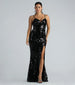 A dazzling sequin pattern gives a dash of regal flare to the Sandy formal velvet dress! She features a V-neckline with a wire insert. adjustable spaghetti straps for a customized fit. a mermaid silhouette that flaunts your gorgeous curves. and a high front slit and floor-length hem. The formal dress is designed with a sequin-embellished pattern on soft velvet fabric to bring the sparkle to your night and has a stretchy short knit lining. Complete the look for a red carpet. gala. or formal celebration with a bracelet and earrings.