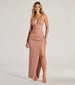 Look sensational in the shimmering Sandy glitter formal dress at weddings. banquets. or dressy soirees! Â The pleated V-neckline and crisscross back add to the slim silhouette for a stunning. figure-flattering look. With spaghetti straps and a high front slit. this floor-length dress is a must-have for any formal occasion. Complete the look with a clutch.
