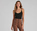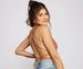 Show off your sassy style in this adorable knit bodysuit that is perf for the warmer weather! It features a scoop neckline and dual bungee spaghetti straps that lead to a backless strappy design. Pair this bodysuit with denim shorts for a casual outing. or a pleated mini skirt for a trendier vibe.
