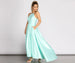 Step out to any event in our gorgeous Carmilla! Made from a sleek satin-like composition. one of her defining features is her voluminous pleated skirt with a subtle high-low hem. You'll be pleased to know she has hidden hand pockets for storing your essentials and hands for those picture-perfect moments!