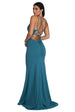 Stun in elegance as you wow in our Savannah dress! She features an all over teal hue. a deep V neckline. padded cups and princess seams. Her back features an open back with a lattice detailing that leads to a lower zipper closure. Her slim fit bodice leads to a form hugging mermaid silhouette accented with vertical seams that create an hourglass illusion. Dress is composed of a lined crepe fabric and offers a moderate stretch.