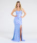 You'll look elegant all night in the gorgeous Sawyer sequin formal dress perfect for sparkling on the dancefloor! Leave guests breathless in this floor-length gown boasting a lace-up back and high front slit giving alluring vibes.