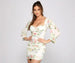Say yes to a gorgeous bodycon that keeps it sweet and sultry. The dress features an off-the-shoulder neckline. a sweetheart bust with a no-slip strip. padded cups. a ruched body. long ruched sleeves. and a floral print. The dress is composed of a lined mesh fabric that offers a form-hugging fit with a moderate stretch. Complete look with clear mules and a quilted diamond crossbody.