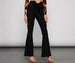 Seal in a stylishly chic outfit with pants that take you from day to night. The pants feature a high-rise waist. a tie-waist belt. and a straight leg fit with a flared hem. The pants are composed of a milled Ponte-like fabric that offers a form hugging fit with a moderate stretch. Complete the look with a blouse and blazer to complete your chic workwear outfit.Â