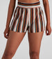 Refresh your closet for summer! Show off your flirty style in these striped shorts featuring a high-rise waist. form-fitting silhouette. and pleated lined fabric. Complete the look in the matching top.