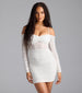 Shine on the dance floor in this glitter mini dress designed to own the spotlight! With a flirty off-the-shoulder neckline. sheer long sleeves. and a bodycon fit. you'll have every eye on you.