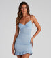 Set off your night with a head-turning bodycon that raises the heat! The dress features a sleeveless wrap V-neckline. spaghetti straps. a ruched body. and a mini-length silhouette with a ruffled hem. The dress is composed of a smooth knit fabric that offers a form-hugging fit with a moderate stretch. Complete look with rhinestone heels and a clutch.