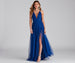 Make a breathtaking entrance at prom in the whimsical Shay A-line tulle formal dress! With her lightweight. flowy. A-line silhouette. you'll radiate beauty with every step. She features a sleeveless plunging V-neckline. adjustable spaghetti straps for a customized fit that lead to a cross-back design. and a high empire waist. Her floor-length sheer mesh skirt flows out with chic pleated detailing and features a knit lining with a wrap-front design creating a high slit. Style this dress with sparkling rhinestone earrings to bring the princess vibes to this prom season.
