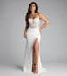 Designed to be eyed up and down. the Shayla long formal dress brings the sultry heat to any black-tie occasion! A curved neckline and sheer mesh lace corset bodice create a sophisticated silhouette. while the lace-up back provides a personalized fit.