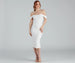 Romantic sparks fly in the Sheila formal dress for your next evening out! She brings classy sophistication in an off-the-shoulder drape neckline on the corset-style bodice with flexible boning to flaunt your curves. Her fitted. empire waist shapes the midi length hem with a back slit and zipper closure. The formal dress is composed of a crepe-lined fabric with a moderate stretch. Complete your look in statement earrings and satin heels.