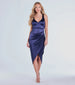 Silky satin crafts the elegant Sheila midi formal dress perfect for bridesmaids. wedding guests. or a dressy banquet! The sleeveless dress boasts a flattering V-neckline with wide shoulder straps that shape the head-turning lace-up open back while the faux wrap bodycon silhouette shows off your figure. Pair with earrings and heels.