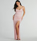 Shelly High Slit Glitter Knit Formal Dress
