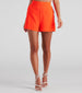 Create a bold babe look in these stunning and chic woven shorts. They feature a high-rise banded waist. hidden front side pockets. and back faux pockets along a straight-fit silhouette. Style with the matching structured blazer and clear mules.
