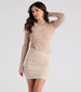 Show off your trendsetting ways in this of-the-moment crop top! It features a crew neckline with an asymmetric cutout and faux button details. long fitted sleeves with one featuring a cutout elbow and faux buttons accents. a front-destructed cutout design with connecting functional buttons. and a fitted. asymmetrical. cropped hem with a side slit. The ribbed sweater knit fabric offers a moderate stretch. Style with boyfriend jeans.