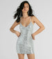 Be the gift that keeps on giving in this sequin party dress at every girl's night! Designed with countless sequins on mesh fabric. this mini dress is in for a shimmering time. It features a sultry V-neckline. adjustable spaghetti straps that form the strappy open-back detail. and a curve-loving bodycon silhouette. Complete the look in platform heels and earrings!