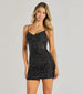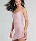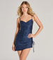 Shine bright like a diamond in this rhinestone mini dress at the club! Featuring a cowl V-neckline. adjustable spaghetti straps. and a form-hugging A-line silhouette. this mini dress will accentuate your figure while the adjustable ruched drawstring and slit provide a customizable fit. Complete the look in platform heels for a night on the town!