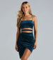Show off your sparkling style in this glitter velvet mini dress! The short dress features a square neck. thick spaghetti straps. cutout waist with a strap. a flattering bodycon silhouette. and an asymmetrical wrap mini-length hem. Style the glitter velvet mini dress with earrings for a night out!
