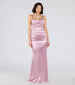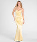 Indulge in the opulent Shondra mermaid satin formal dress for an evening of elegance! The formal dress has a pretty beaded applique neckline for a romantic allure while the floor-length hem adds dramatic flair.