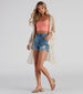 Chill along the shore looking so trendy in this crochet woven kimono featuring flowy. long sleeves with cuffs and a sheer longline design. Complete the look in a crop top and denim shorts.