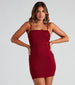 Short and sweet. your curves deserve a moment! Look chic in this mini ponte dress designed to hug and flatter your figure on a sleeveless square neckline. adjustable spaghetti straps. and ruched mesh side accents that lead to the form-hugging fit. Complete the look in statement earrings for a club night.