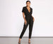Step out in a chic utility jumpsuit. The statement jumpsuit features a plunging V-neckline. two utility pockets. short sleeves and a tie waist belt with loops. The relaxed fit waist leads to a straight leg fit that tapers to a skinny leg fit. The jumpsuit is composed of a utility cargo knit fabric that offers a relaxed fit with a slight stretch. Complete your outfit with extra-large hoops and stiletto heels.
