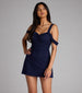 Giving soft drama and sweet details! This cold shoulder mini dress flatters with a twist-front sweetheart neckline and an A-line fit that flatters just right. perfect for date night or semi-formal soirees.
