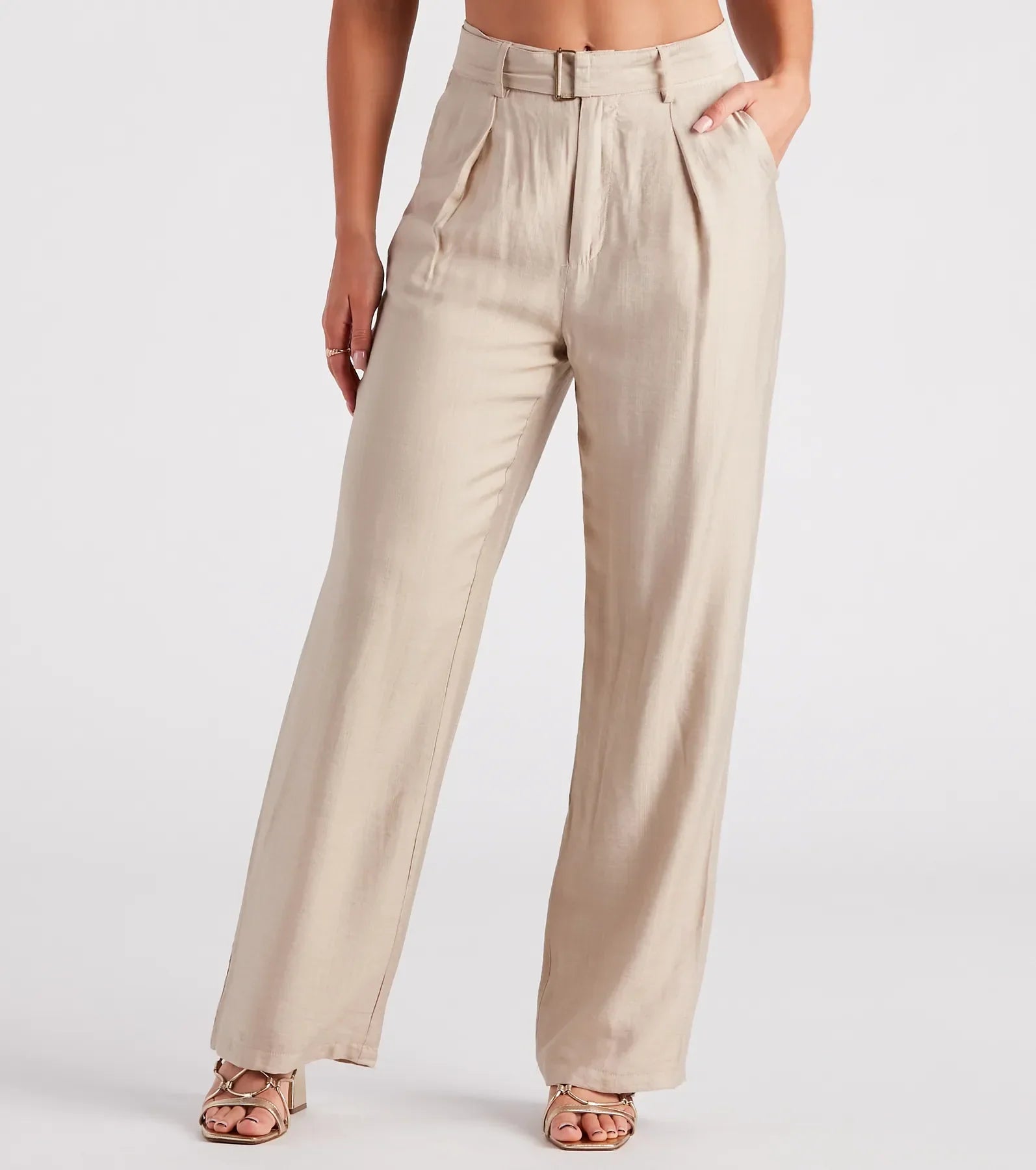Show up in these stylish linen trouser pants to create an effortlessly chic look! They feature a high-rise belted waist. belt loop accents. hidden side pockets. and front pleating going down the wide-leg silhouette. The lightweight linen fabric includes a woven lining. Complete the outfit in strappy-heeled sandals for a daytime casual soiree or a lunch date!