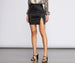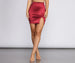 Slide on this mini skirt for a sultry look! It features a high rise waist. double front vetical seams. and a short hem with a slit. The knit fabric offers moderate stretch and a form hugging fit.
