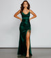 Keep your look chic and stunning in the curve-hugging Sienna formal dress. She features a sleeveless cowl neckline. spaghetti straps. a high waist with ruched detailing. and a floor-length mermaid silhouette with a sultry thigh-high front slit. Complete the outfit with rhinestone earrings and strappy heels.