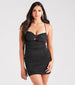 Show off your signature sparkle in this glitter mesh mini dress for a night on the town! Featuring a sleeveless sweetheart neckline with a padded bust. a lace-up back. and ruched seams that accentuate every curve along the bodycon silhouette. you'll make a statement with every step. Complete the look with a bracelet and earrings for extra glam!