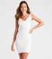 Simple and stunning. this classic mini dress is a closet staple. It features a sleeveless cowl neckline with a draped design. tank shoulder straps. a scoop back design. ruching down the side seams. a mini-length hem. and a bodycon silhouette that will hug your curves. Style with strappy mules for a dinner date or party.
