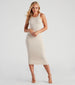 All a girl needs is this basic crew tank midi dress perfect for dressing up or down! It features a sleeveless bodice. wide tank shoulder straps. a midi-length hem. and a bodycon silhouette on lined ribbed knit fabric with plenty of stretch. Style this mid-length dress with a jacket and suede booties.