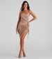 Keep it sophisticated and luxe with a formal dress that elevates your formal evening. Sinéad features a one-shoulder neckline with a single spaghetti strap. a ruched body. and an asymmetrical hem with an adjustable drawstring. The dress is composed of a smooth knit fabric that provides a form-hugging fit with a moderate stretch. Complete look with heels and door knocker earrings.