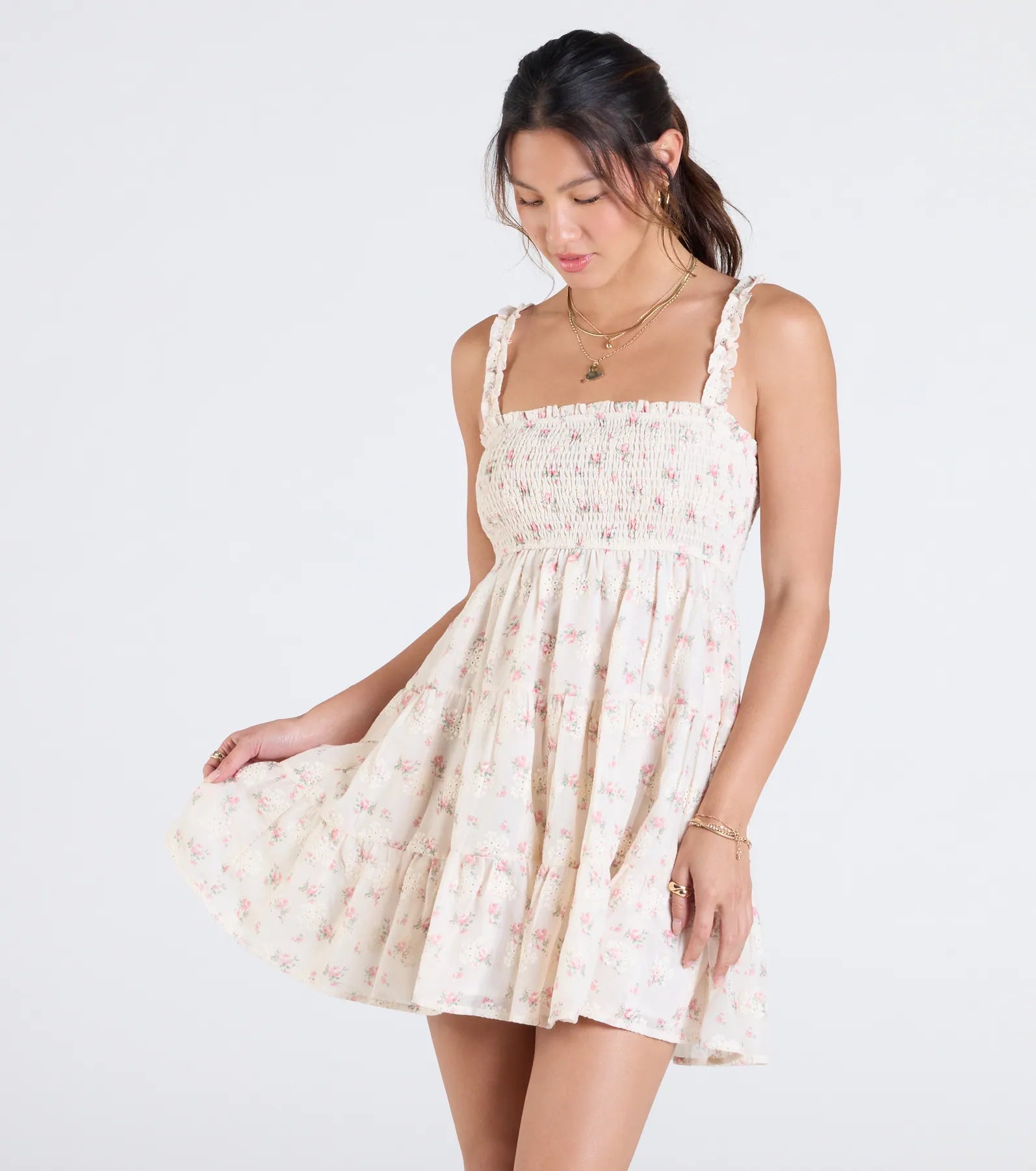 So charming for sunny days. this floral babydoll mini dress is fit for frolicking downtown to brunch or attending a shower!