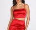 Sizzle in satin girl. because your look is straight fire! Pair this crop top with the matching mini skirt!