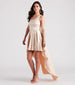 Get ready to stun in the flirty Sky formal satin dress as a wedding guest or for a sweet sixteen! She features a sleeveless one-shoulder neckline. a single tank strap. a lightly padded bust. and a ruffled high-low hem with a gorgeous flowy silhouette. The formal dress is composed of silky satin fabric with a stretchy knit lining. Complete the look with statement earrings and a bracelet.