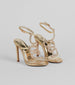 Slay every step in these sleek jeweled snake stiletto heels! They feature an open almond-shaped toe with a clear strap. an asymmetric clear strap across the foot with an intricate snake design. varying-sized rhinestone embellishments. an adjustable ankle strap. and a stiletto heel. The faux leather material has a fab snake print trim and a chrome sheen. Create an iconic look with these heels. a bodycon dress. and gold jewelry!