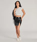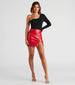 Elevate your going-out looks in this sleek faux leather mini skirt! This high-waist mini skirt features a sexy front slit and hidden back zipper for a seamless look at every angle. Make this faux leather mini skirt your wardrobe must-have for date night or clubbing with your party squad. Pair this flirty mini skirt with a beaded bustier top or long-sleeve satin tie-front top for a sexy and fierce night-out look.