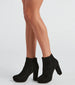 Sleek and chic. these faux suede booties make a bold statement! They feature a round toe. side zipper closure. block heel. and fit above the ankle. Complete the look in a duster trench coat.