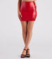 Keep it sleek with a mini skirt that is part luxe. part edgy! The skirt features a high-rise waist. a mini side slit. and a mini-length silhouette. The smooth faux leather fabric offers a moderate stretch. Complete the look with a beaded bustier and stilettos.