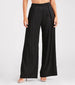 Sleek and sophisticated. these satin wide-leg pants will stylishly elevate your look. They feature a high-rise waist. front pleating. a wide-leg silhouette. and a relaxed fit. The satin woven fabric has minimal stretch. Pair with a basic bodysuit and strappy mules.