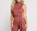 Keep it sleek in a catsuit that showcases your affinity for a chic look. Perfect for your next night out. the catsuit keeps you looking on point. The catsuit features a sleeveless mock neck. a cinching tie waist belt to create a flattering hour-glass illusion. and a sleek tapered skinny leg. Complete your look with a dainty layered necklace and block heels.