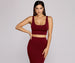 Stay ever so sleek and sultry in this basic crop! The top features a sleeveless bodice. tank-like shoulder straps. a scoop neckline. a rounded back. and a cropped hem. The top is composed of a stretchy knit fabric that offers a form hugging fit. Complete your look with the matching midi skirt!