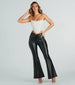 Make a major flex in these faux leather pants to showcase an elevated style! They feature a flattering V-cut mid-rise waist designed to give an hourglass effect. a hip-hugging fit. and a flared hem. Complete the look in a corset top for cocktail hour!
